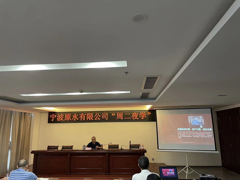 7月19日,原水公司组织开展“周二夜学”。公司党委书记叶小华作《习近平治水思想学习体会》专题党课。